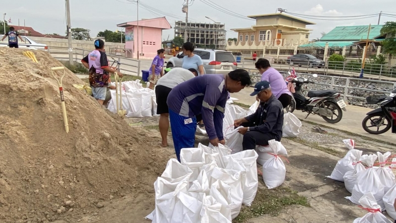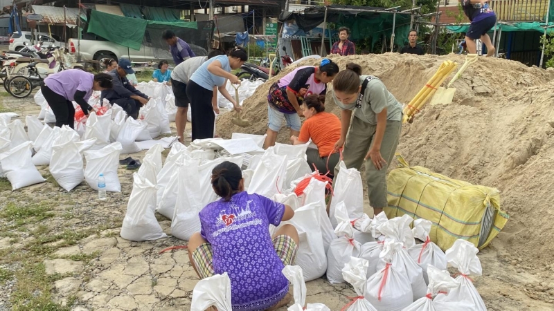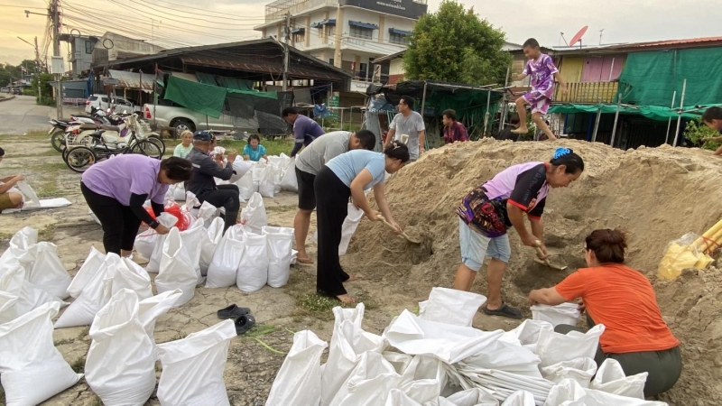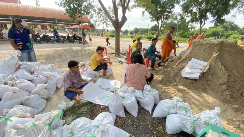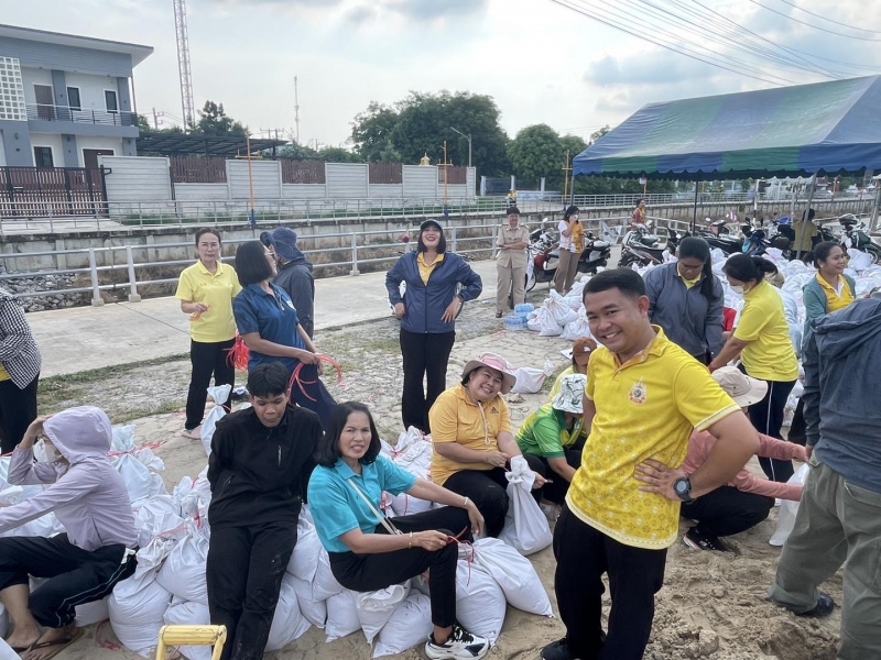 เพื่อป้องกันน้ำท่วม และนำไปทำแนวกั้นน้ำในจุดเสี่ยง ทั้งนี้ นายณัฐวุฒิ อนุโยธา นายอำเภอป่าโมก ได้ลงมาตรวจเยี่ยมให้กำลังใจเจ้าหน้าที่ และประชาชนที่ร่วมกันกรอกกระสอบทราย
