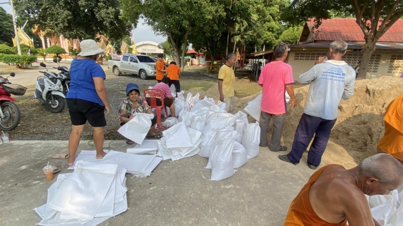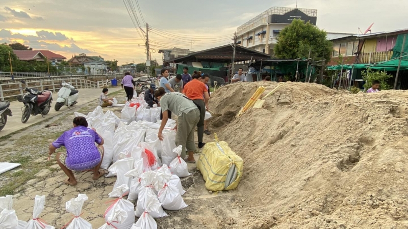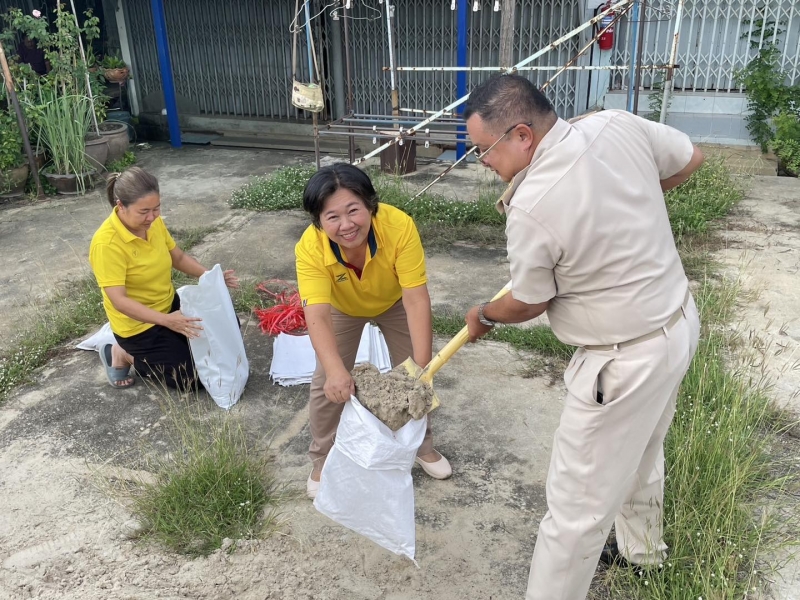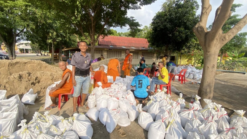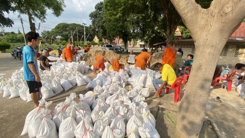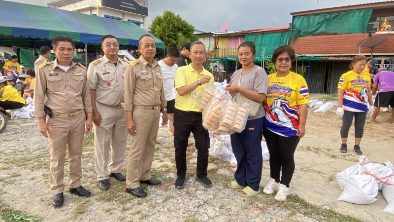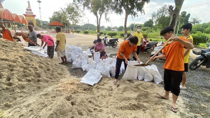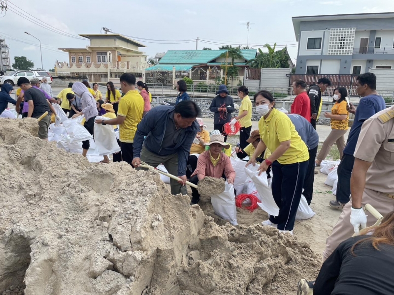 เพื่อป้องกันน้ำท่วม และนำไปทำแนวกั้นน้ำในจุดเสี่ยง ทั้งนี้ นายณัฐวุฒิ อนุโยธา นายอำเภอป่าโมก ได้ลงมาตรวจเยี่ยมให้กำลังใจเจ้าหน้าที่ และประชาชนที่ร่วมกันกรอกกระสอบทราย
