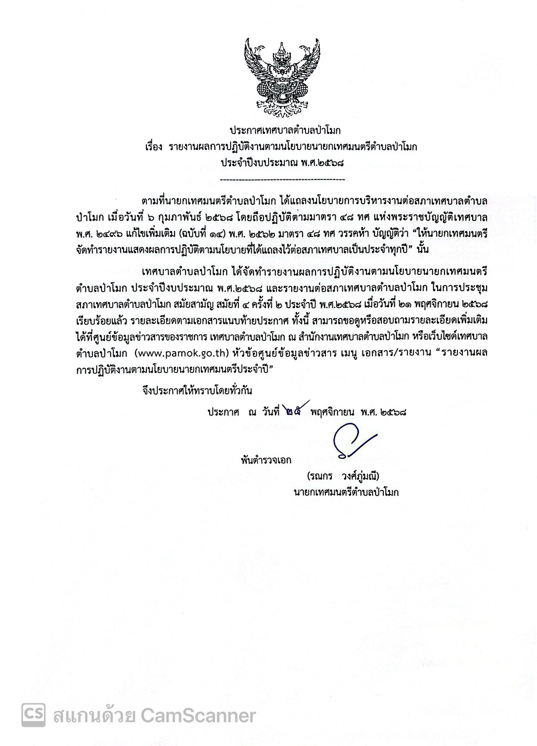 รายงานผลการปฏิบัติตามนโยบายนายกเทศมนตรี